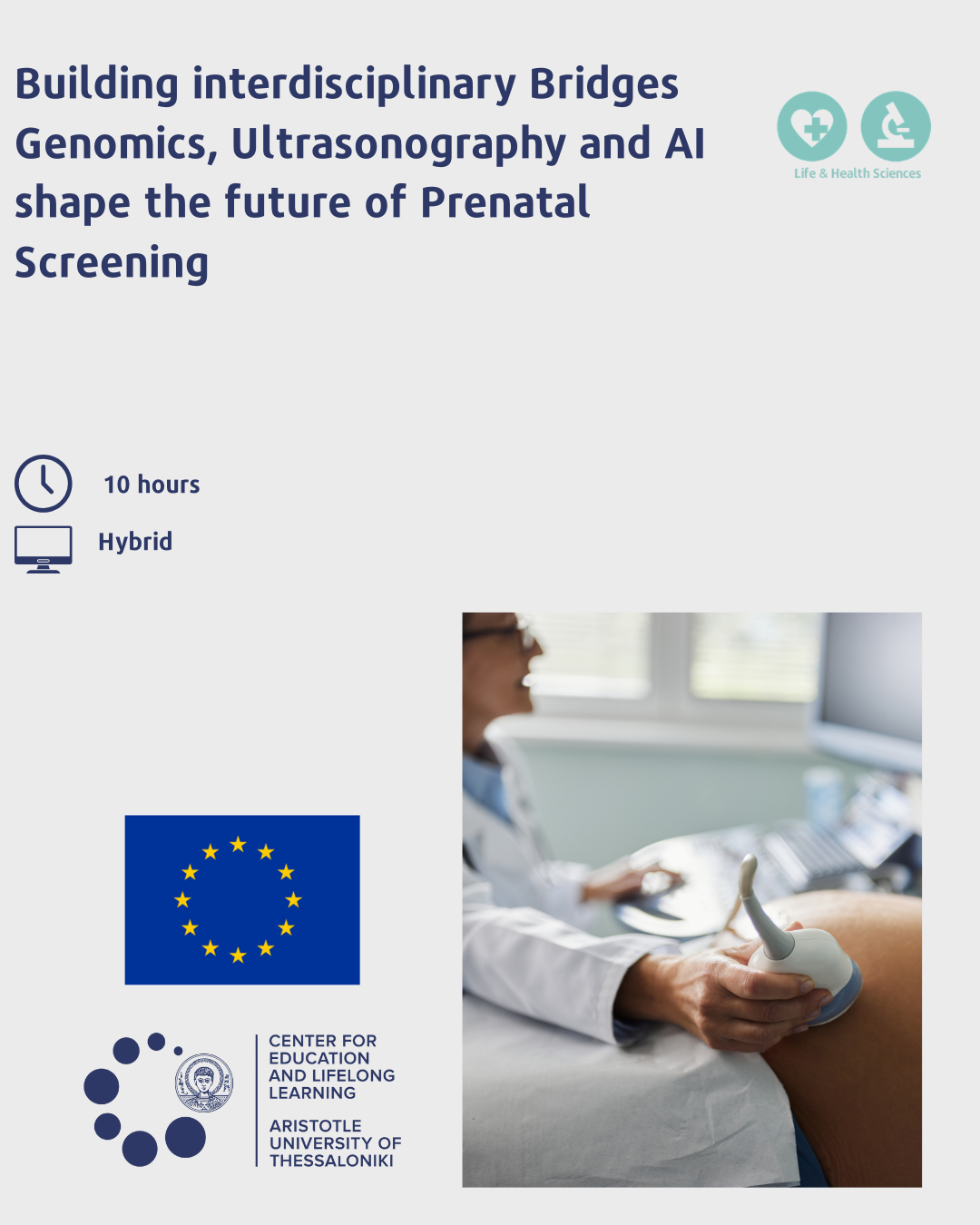 The Center for Training and Lifelong Learning (KEDIVIM) of the Aristotle University of Thessaloniki (AUTH) welcomes you to the educational program entitled \”Building Interdisciplinary Bridges: Genomics, Ultrasonography and AI shape the future of Prenatal Screening\”, lasting 10 teaching hours, which will be held at the “Krispi Hall” of the Museum of History of the National and Kapodistrian University of Athensand will be implemented using the hybrid in -person with access to remote attendance method.