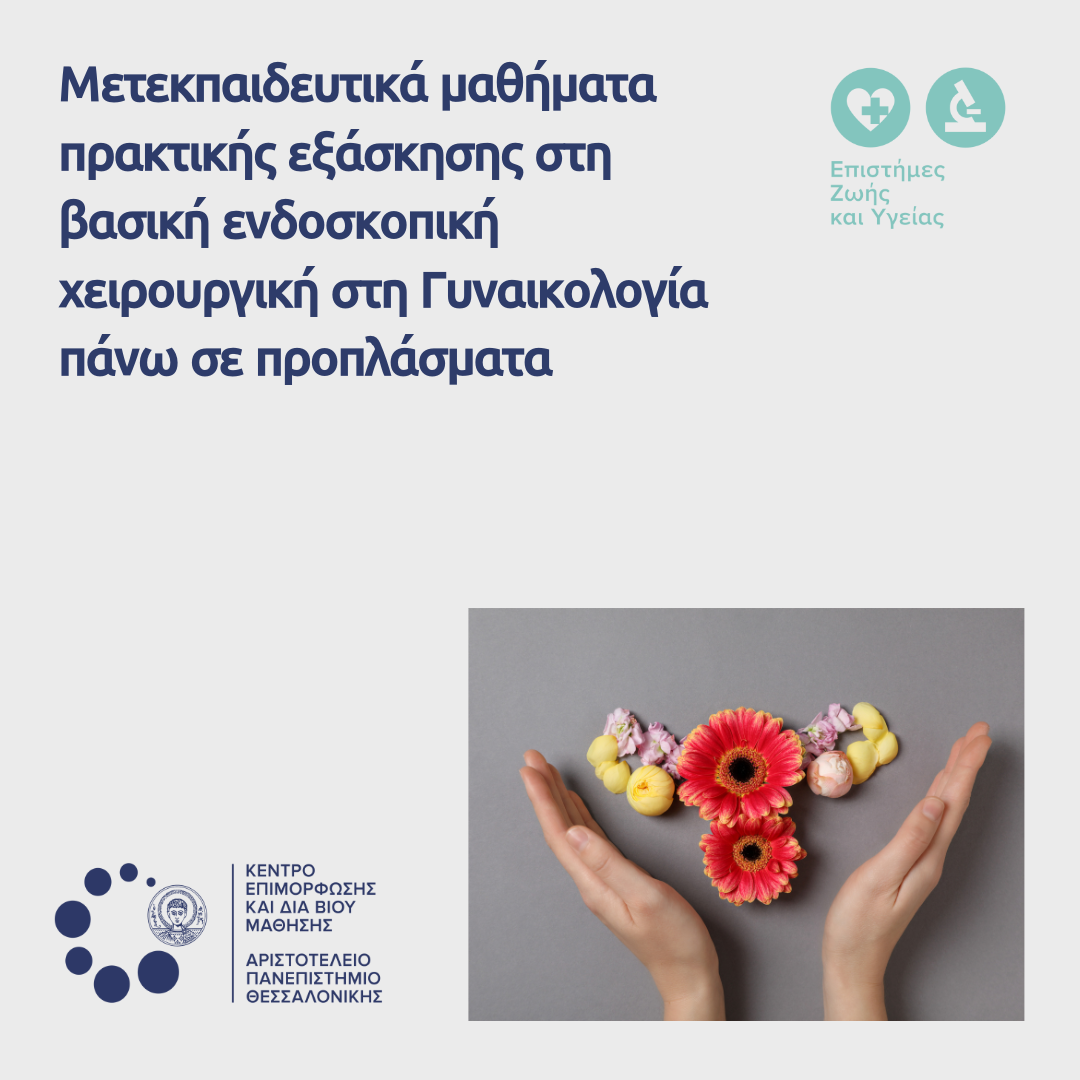 ΤοΚέντρο Επιμόρφωσης και Διά Βίου Μάθησης (ΚΕΔΙΒΙΜ)τουΑριστοτελείου Πανεπιστημίου Θεσσαλονίκης (ΑΠΘ)σας καλωσορίζει στο εκπαιδευτικό πρόγραμμα με τίτλο «Μετεκπαιδευτικά μαθήματα πρακτικής εξάσκησης στη βασική ενδοσκοπική χειρουργική στη Γυναικολογία πάνω σε προπλάσματα (Επανέγκριση 6ος)», διάρκειας 21 διδακτικών ωρών, το οποίο θα διεξαχθεί κατά το εαρινό εξάμηνο 2025-2026 και θα υλοποιηθεί με τη μέθοδο διά ζώσης παρακολούθηση.