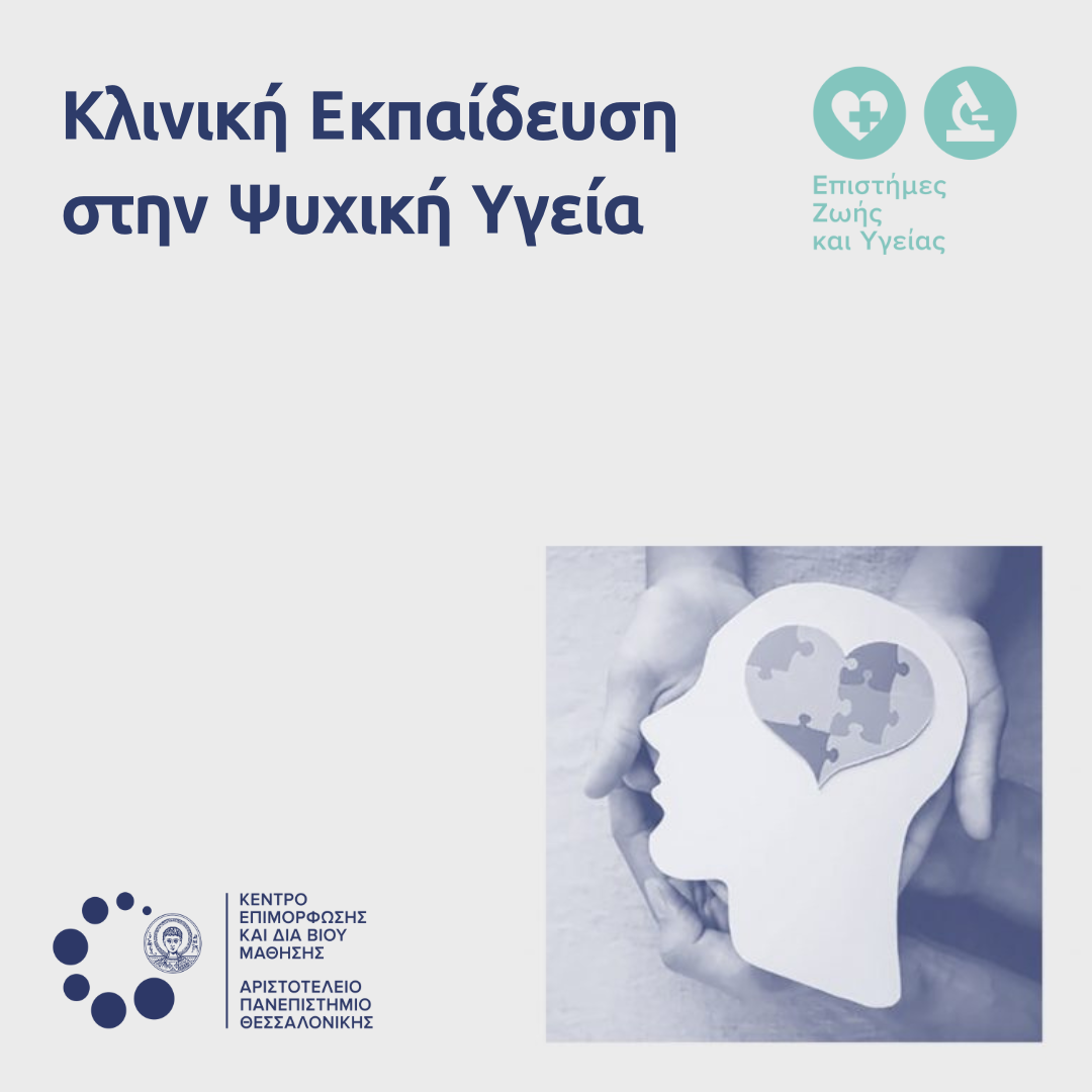 Το Κέντρο Επιμόρφωσης και Διά Βίου Μάθησης (ΚΕΔΙΒΙΜ) του Αριστοτελείου Πανεπιστημίου Θεσσαλονίκης (ΑΠΘ) σας καλωσορίζει στο εκπαιδευτικό πρόγραμμα με τίτλο «Κλινική Εκπαίδευση στην Ψυχική Υγεία», διάρκειας 307 ωρών, το οποίο θα διεξαχθεί από τις 16/2/2026 έως τις 1/7/2026 και θα υλοποιηθεί διά ζώσης στην Α’ Ψυχιατρική Κλινική ΑΠΘ στο ΓΝ Παπαγεωργίου.Το πρόγραμμα παρέχει 20 ECTS.