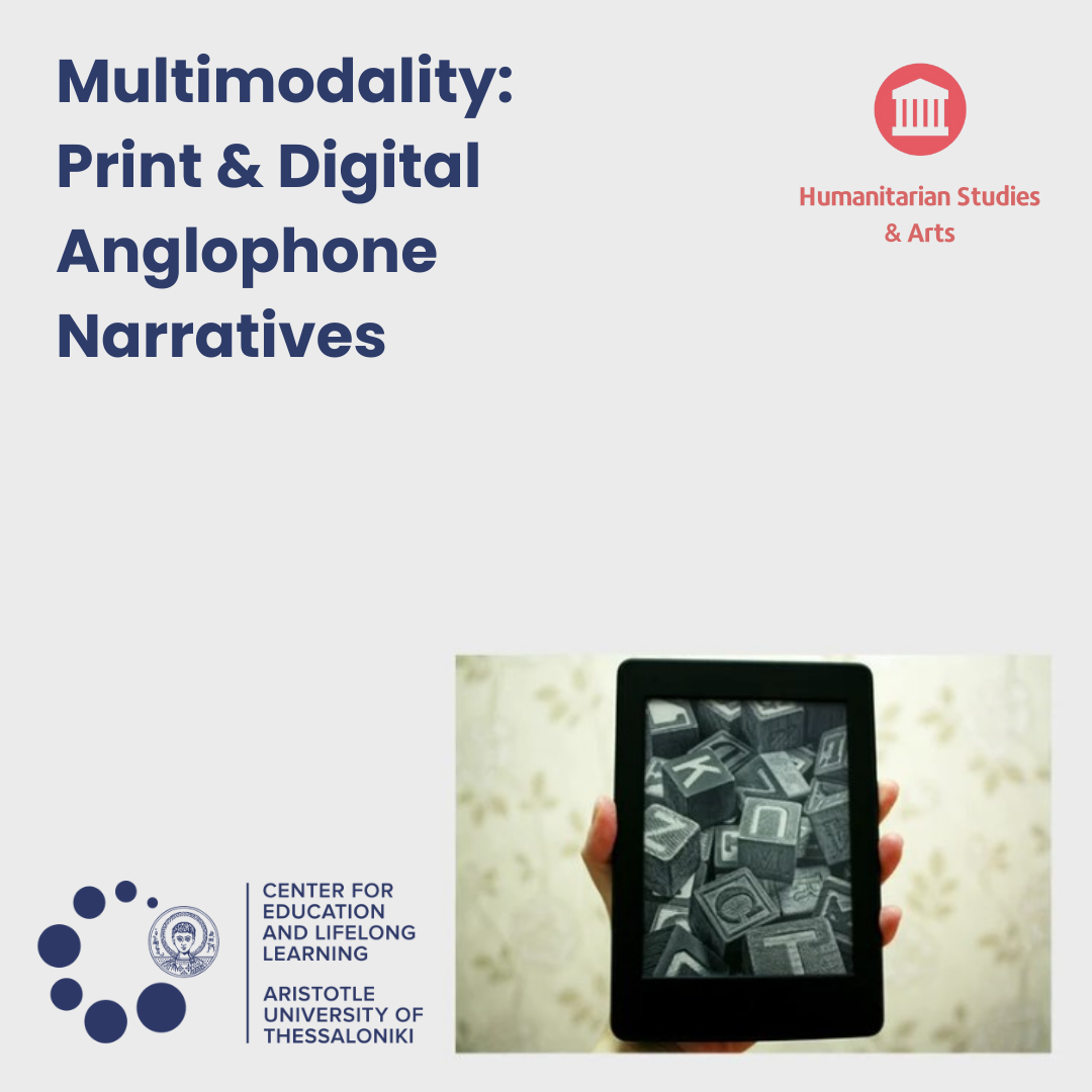 The Center for Training and Lifelong Learning (KEDIVIM) of the Aristotle University of Thessaloniki (AUTH) welcomes you to the educational program entitled “Multimodality: Print and Digital Anglophone Narratives“, lasting 100 teaching hours, which will be held ONLINE and will be implemented using the ASYNCHRONOUS method.