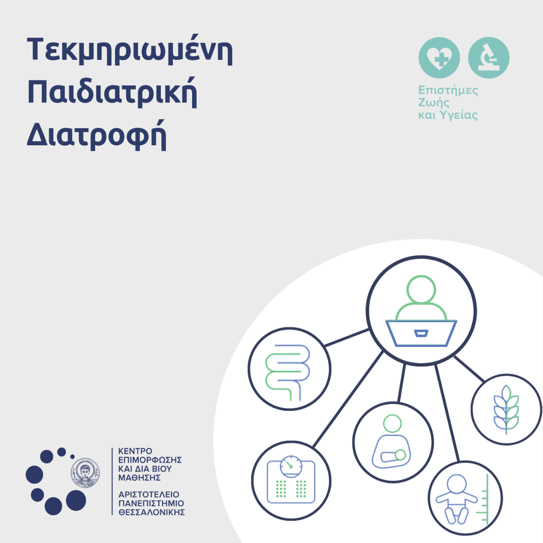 Το Κέντρο Επιμόρφωσης και Διά Βίου Μάθησης (ΚΕΔΙΒΙΜ) του Αριστοτελείου Πανεπιστημίου Θεσσαλονίκης (ΑΠΘ) σας καλωσορίζει στο εκπαιδευτικό πρόγραμμαμε τίτλο «Τεκμηριωμένη Παιδιατρική Διατροφή», διάρκειας 208 διδακτικών ωρών, το οποίο θα διεξαχθεί στην ηλεκτρονική πλατφόρμα e-learning και zoom meetings και θα υλοποιηθεί με συνδυασμό σύγχρονης εξ αποστάσεως και ασύγχρονης τηλεκπαίδευσης. Το πρόγραμμα παρέχει 7 ECTS.