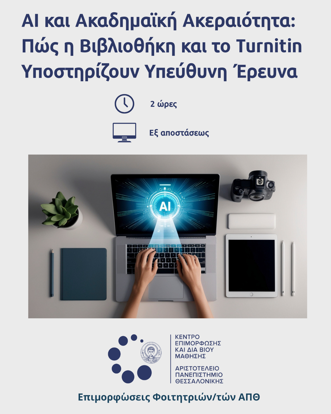 Το πρόγραμμα διάρκειας 2 ωρών απευθύνεται στους φοιτητές του ΑΠΘ, επιδιώκοντας να τους ενημερώσει για τη χρήση της Τεχνητής Νοημοσύνης, την ενίσχυση της κριτικής σκέψης και της δεοντολογικής αξιοποίησης των εργαλείωνAI.